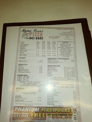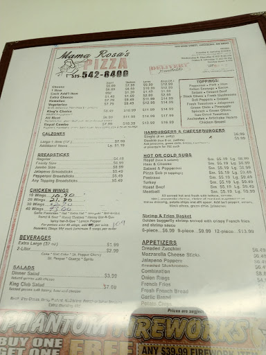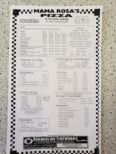 Mama Rosa's Pizza Menu